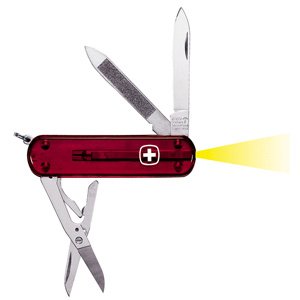The Wenger? Microlight Esquire? Genuine Swiss Army? knife gives you convenience of a built-in, ultra-bright flashlight and a pen blade in a compact design you can carry on a key ring. It's also set-up with a scissors, a cap lifter, tweezers, a nail file, and a nail cleaner. .